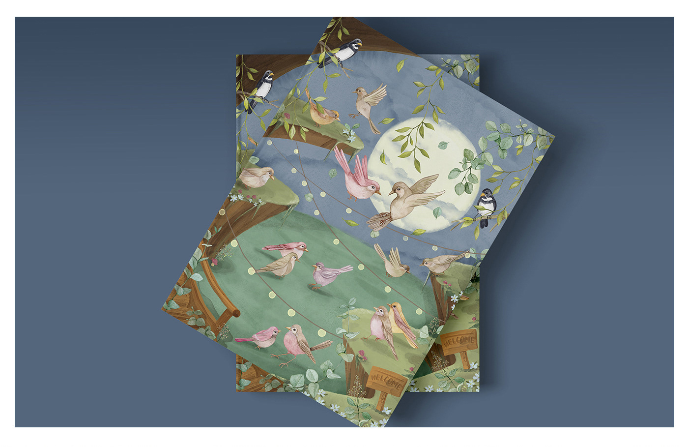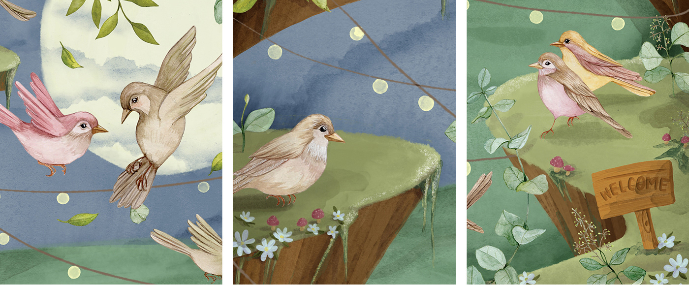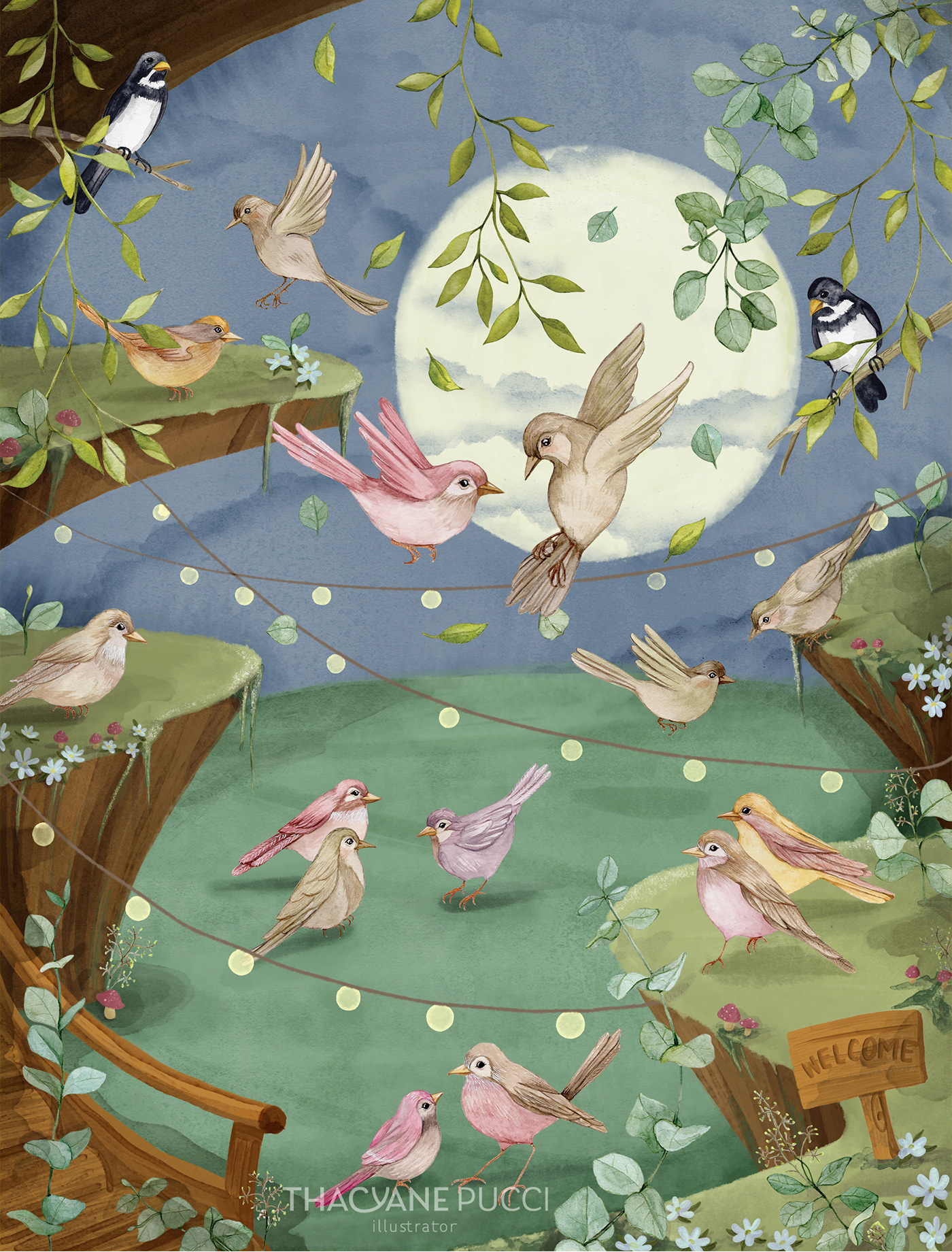 BIRDS AT PARTY - Concept Art - Illustration Watercolor 2022 & Digital Painting - 2024