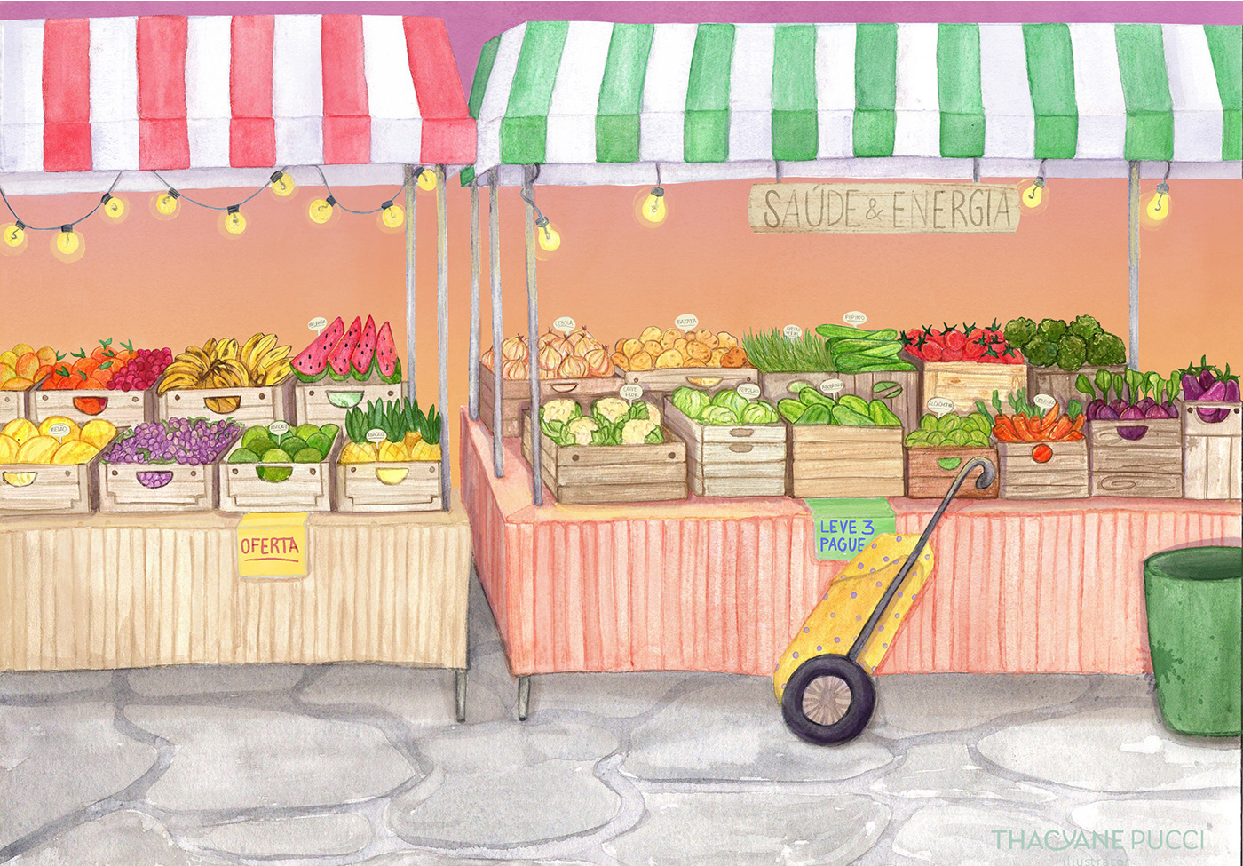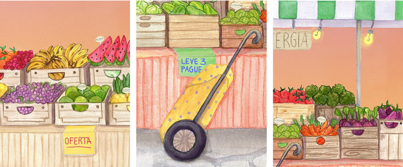 GREENS, VEGETABLES & FRUITS - Illustration Watercolor & Digital Painting - Mixed Media - 2024